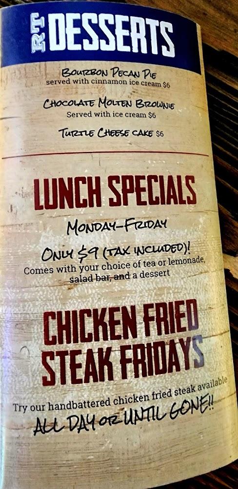 Daily specials elevate dining here, especially the chicken fried steak on Fridays. Desserts like chocolate molten brownies offer a sweet ending. Eager diners will appreciate the variety while everyone finds something enjoyable. Rustic Tavern promises satisfying meals and delightful drinks.